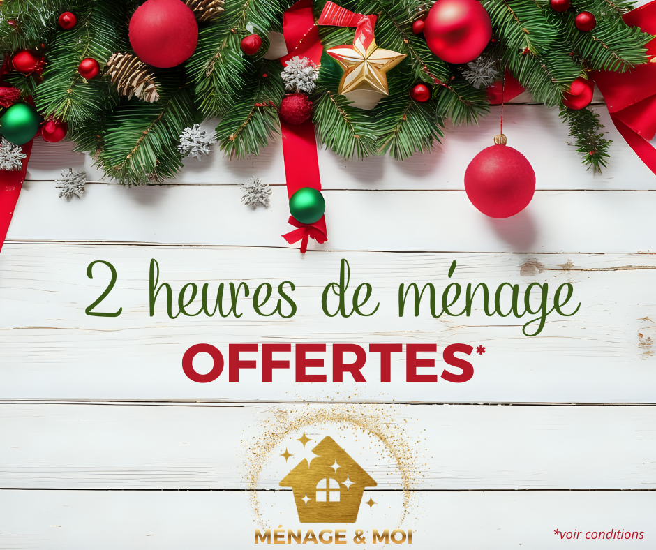L’offre « 2 heures de ménage » est valable pour tout devis et bon de commande signés entre le 10 Décembre 2025 et le 10 Janvier 2026
